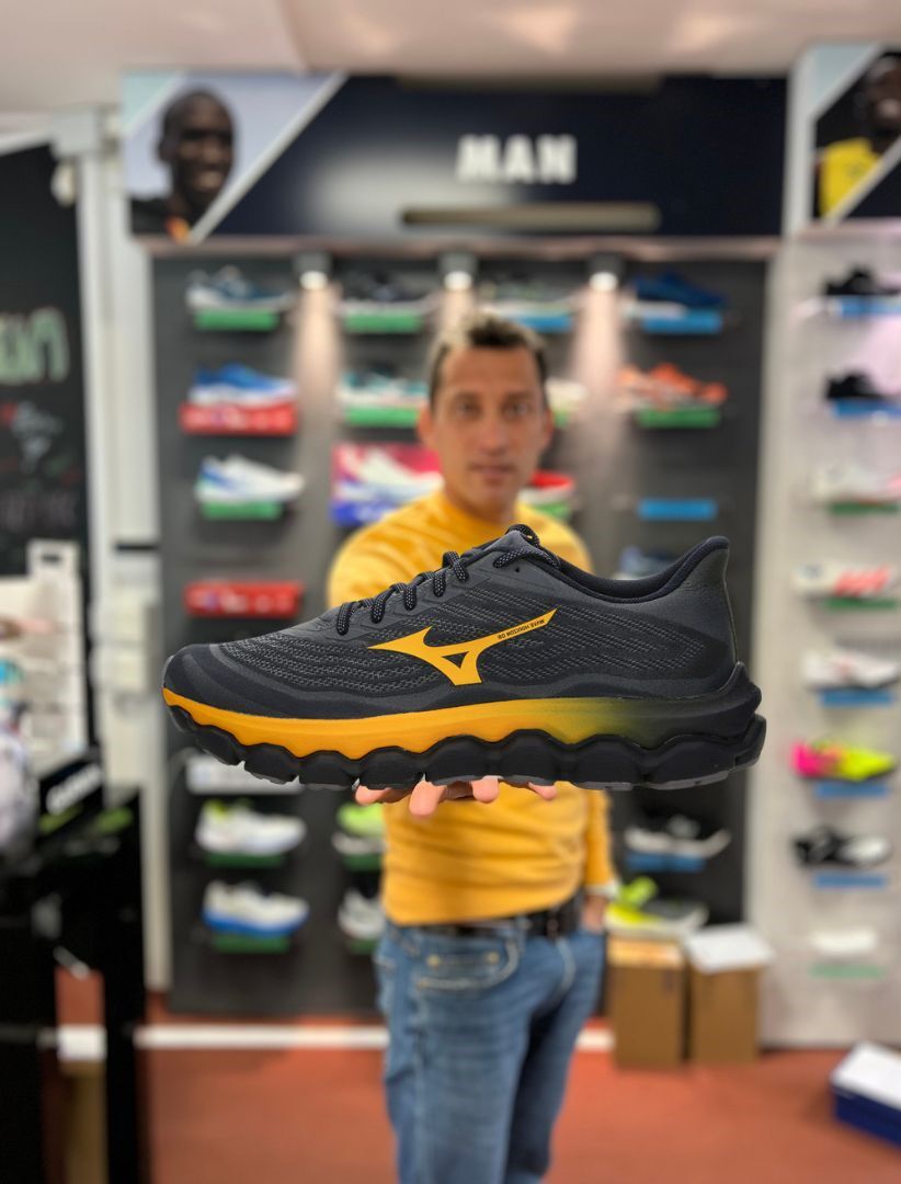 – Suola con base d’appoggio ampia in Rubber Wall che si estende nel lato interno fino all’intersuola, minimizzando le deformazioni durante la transizione dalla fase di appoggio a quella di stacco.