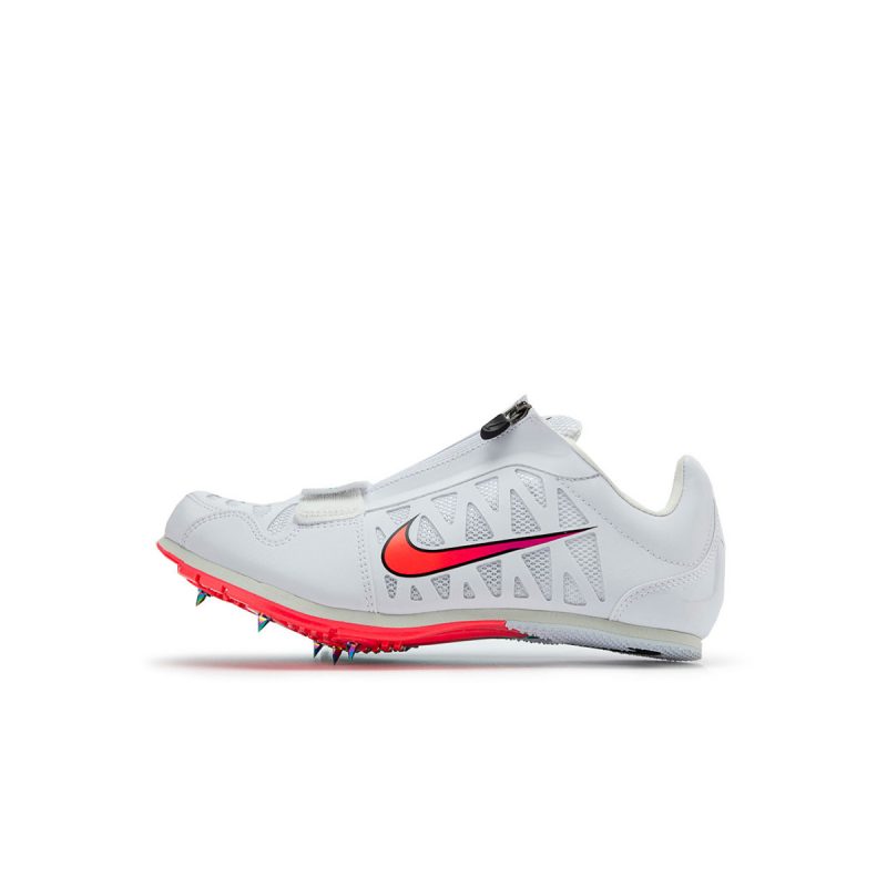 La Zoom LJ 4 è la scarpa Nike specifica per la specialità del salto in lungo. Il piatto suola in Pebax con sette chiodini fornisce un ottimo grip necessario in fase di salto. l’avampiede rialzato facilita la falcata, rendendola più naturale.”