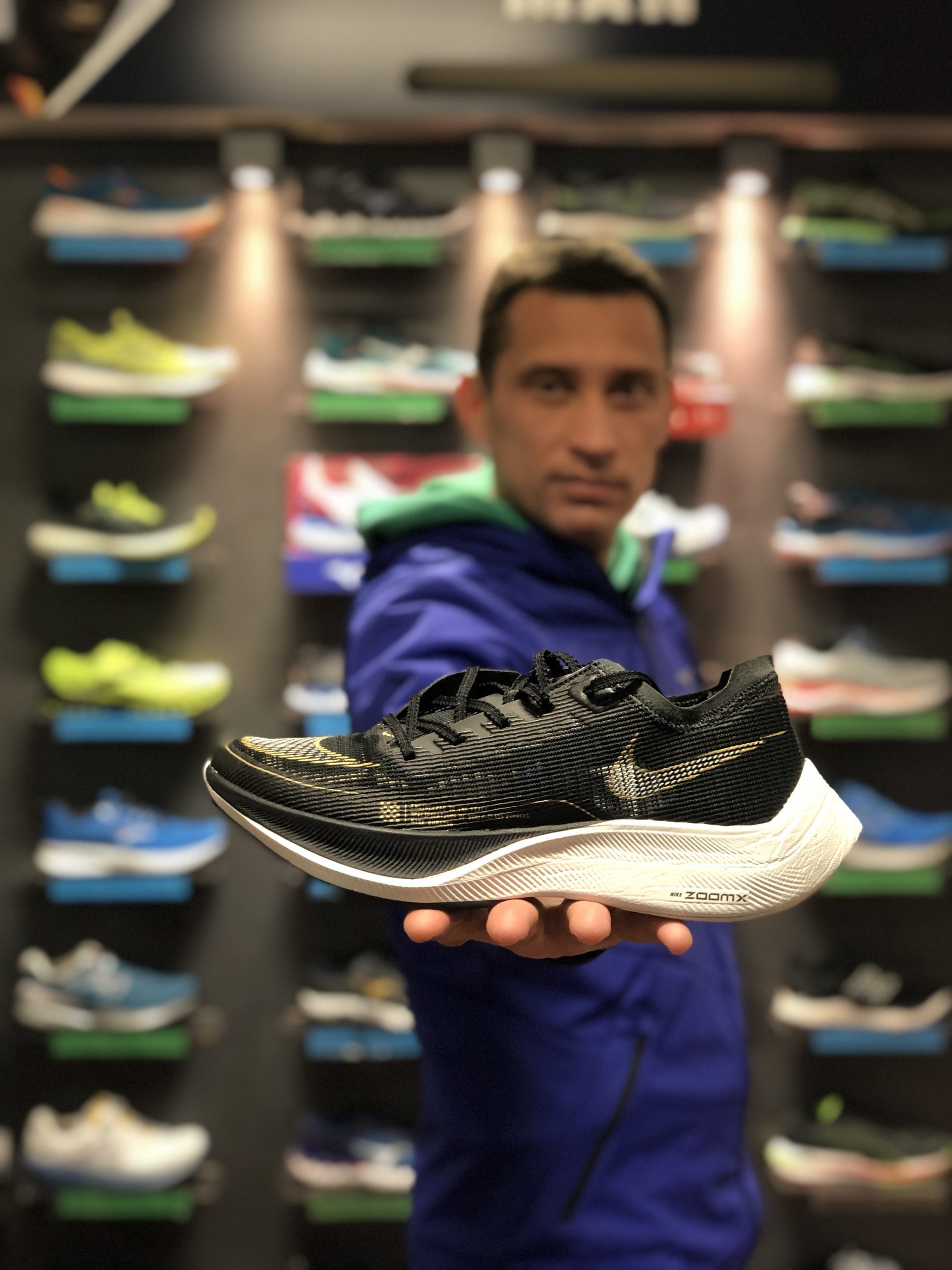 ” Le scarpe sono studiate per dare la massima reattività, con la schiuma ZoomX e una piastra in fibra di carbonio su tutta la lunghezza della suola. Ogni componente è pensato per dare la migliore spinta e propulsione, mantenendo comunque la scarpa super leggera.”